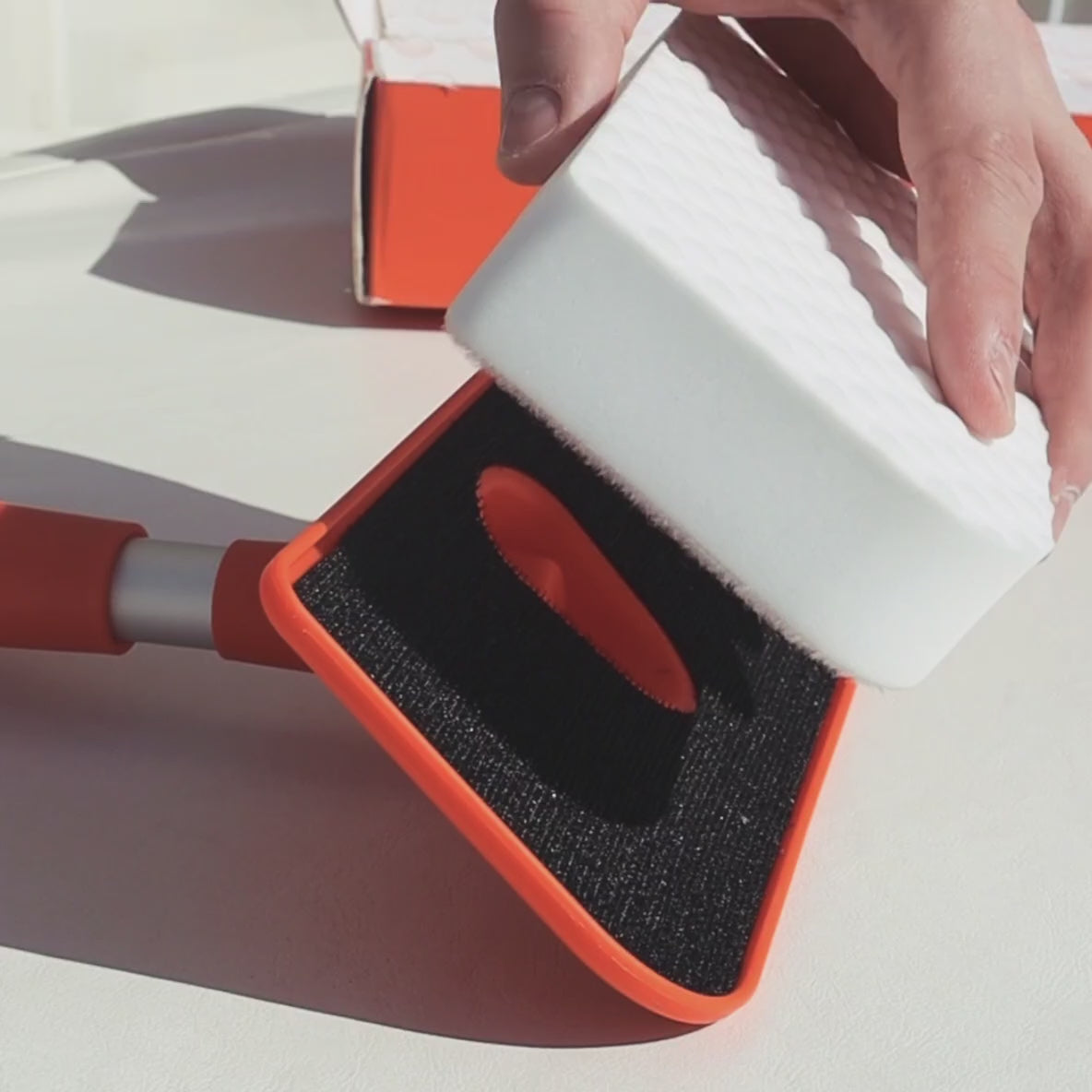 De SKROBBER® Refill Set bevat 3 hoogwaardige reinigingssponzen die je eenvoudig op de SKROBBER® steel bevestigt. Alleen water nodig — geen agressieve middelen.